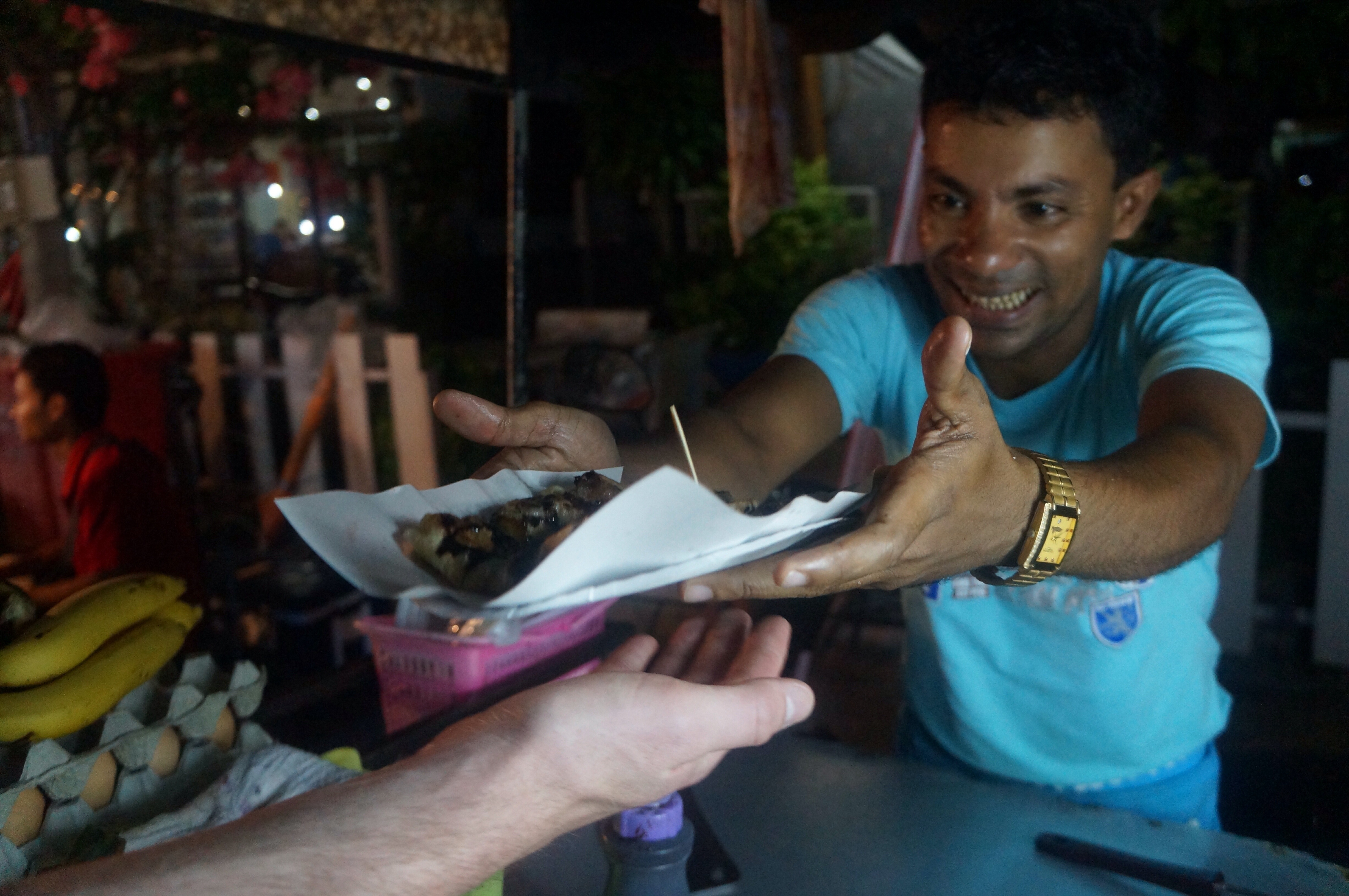 It was the perfect day. We headed home to chill a little bit before the night market right on the street leading down to Mae Nam beach. I was so excited to go to another market, that was my favorite part about Bangkok. I love browsing all the food and little trinkets being sold. Especially when they’re so inexpensive. We bought amazing mojitos for 60 baht each ($2), and lots of different street foods along the way. I was overwhelmed with all the goods being sold, so I opted for a pair of lovely “Ray-Bans” for 150 baht and called it a night. Spense got an amazing Kabob sandwich that I forgot to document, but it was one of the best things I’ve had here! I saw the ladies who owned the salon I got my pedicure at and had a few laughs with them. They of course harassed me to get a massage but I was a little too loose from the drinks to accept. I think they were too.